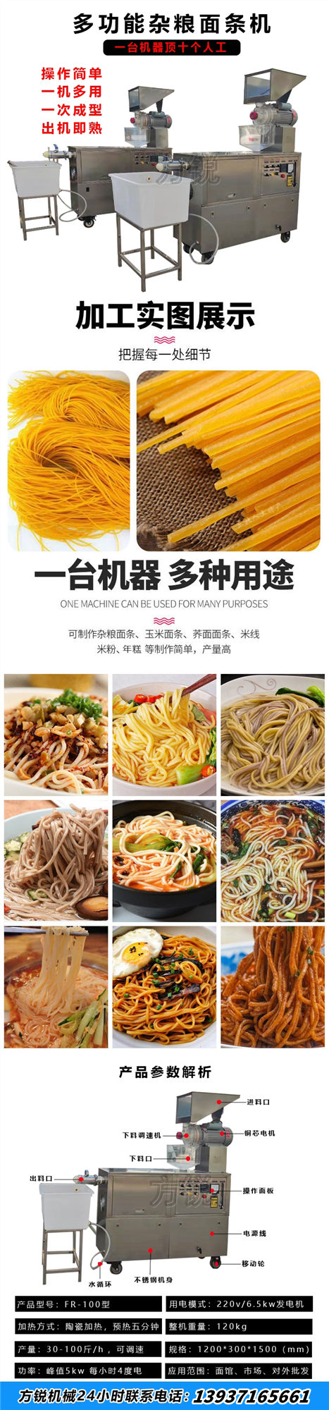 方銳多功能雜糧面條機操作簡單,一機多用,一次成型,出機即熟!可制作雜糧面條、玉米面條、蕎麥面、米線、米粉 、年糕等多種美食,省時省力,產(chǎn)量高,一臺機器頂十個人工。